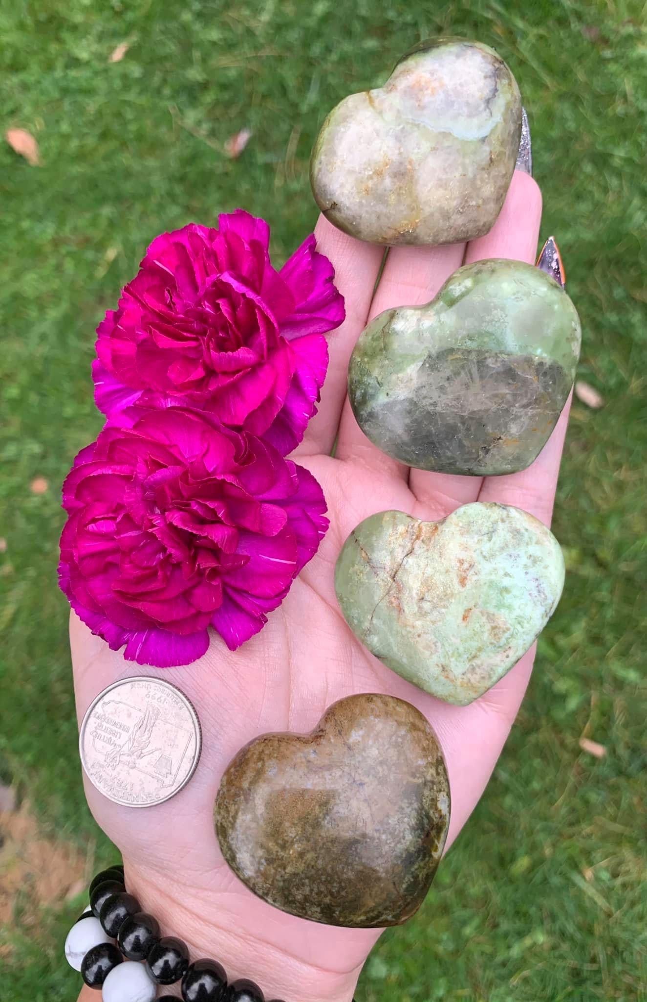 This listing is for one Chrysoprase Mini Heart. Each differing in detail.