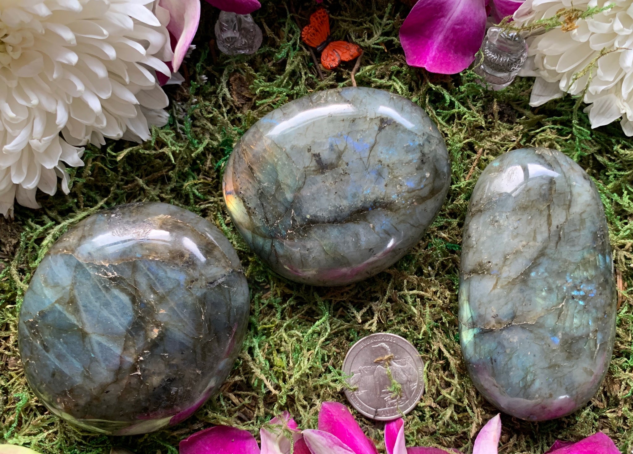 This listing is for one Labradorite Palm Stone. Each differing slightly in detail.