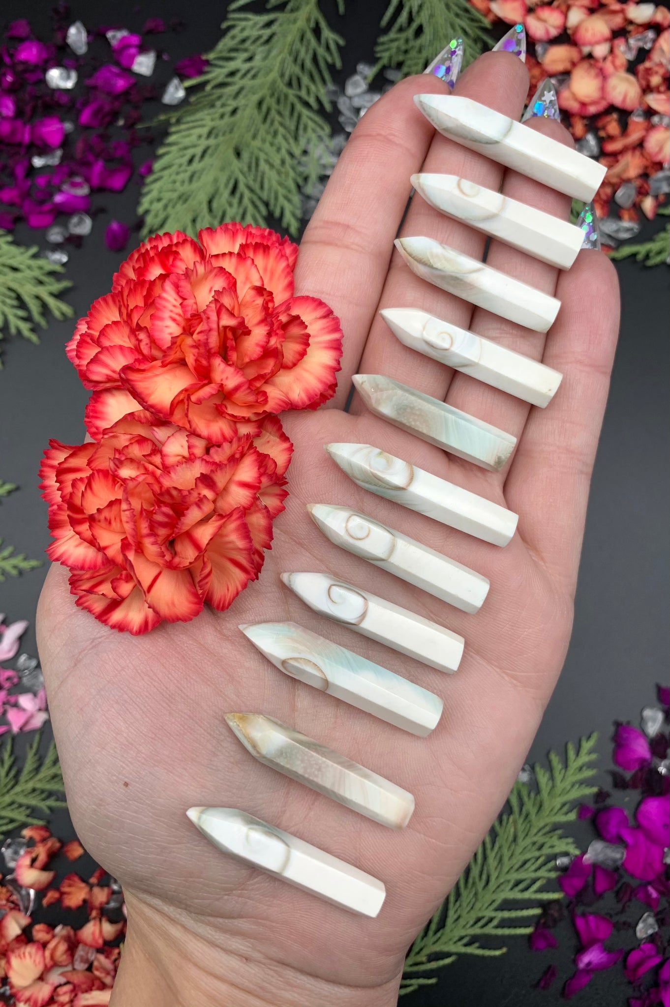 This listing is for one 1.5” Shiva Shell Point. Each differing slightly in detail.